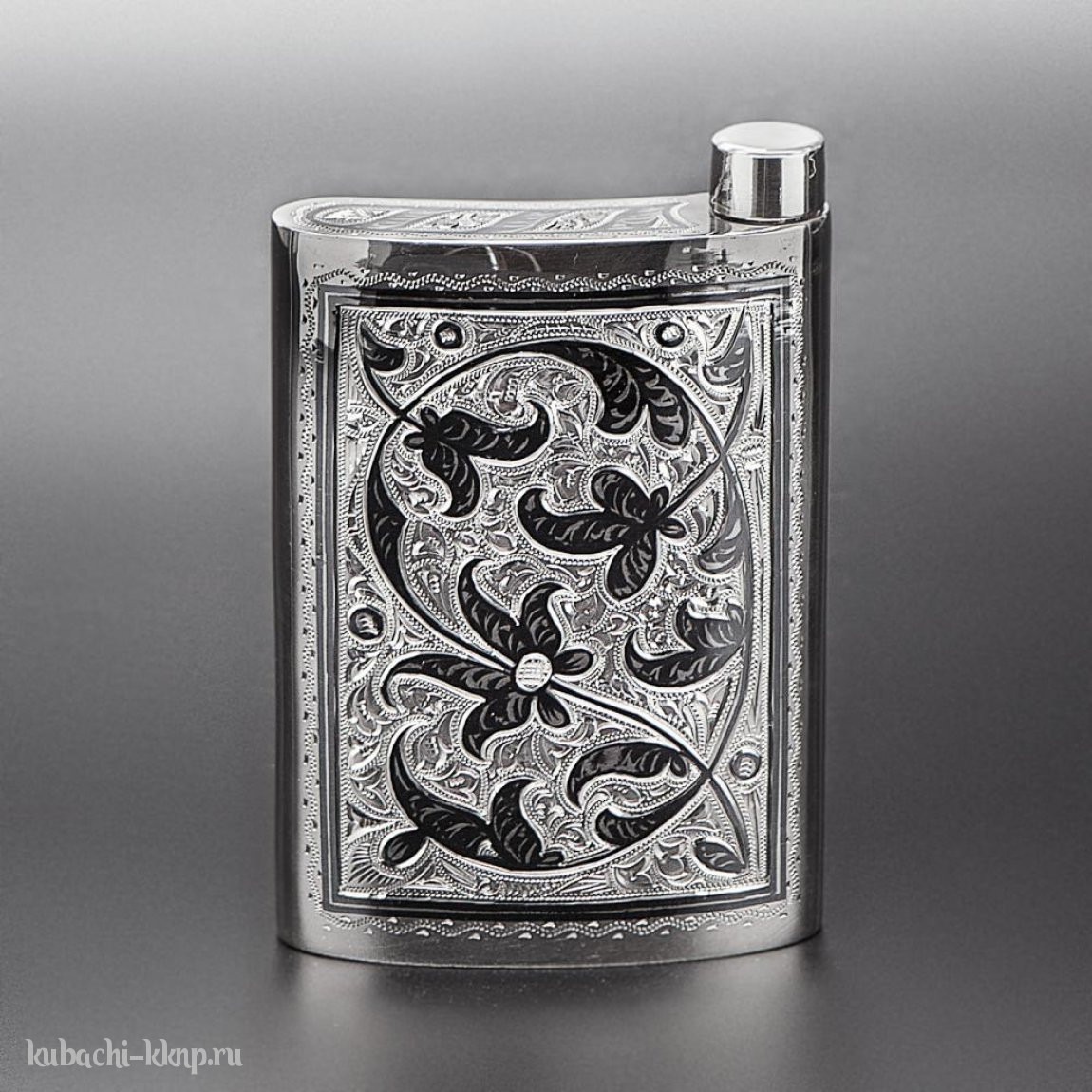 Необычная серебряная фляга с откидной крышкой - ФЛ142