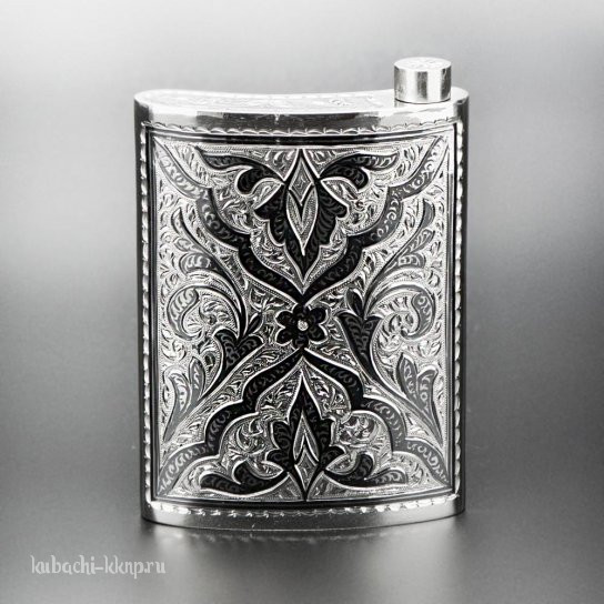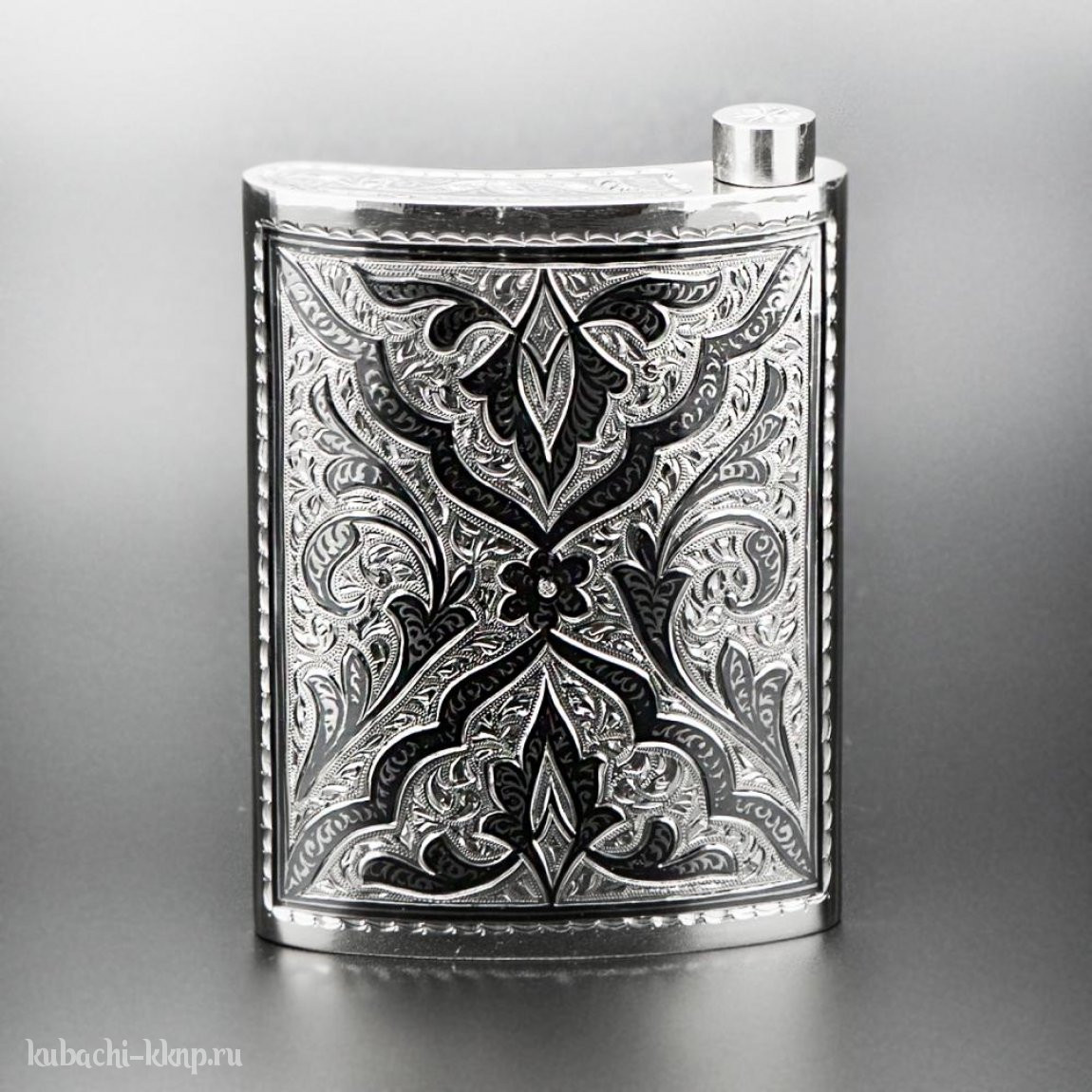 Серебряная фляга с чернением и ручной гравировкой, 230мл - фл101