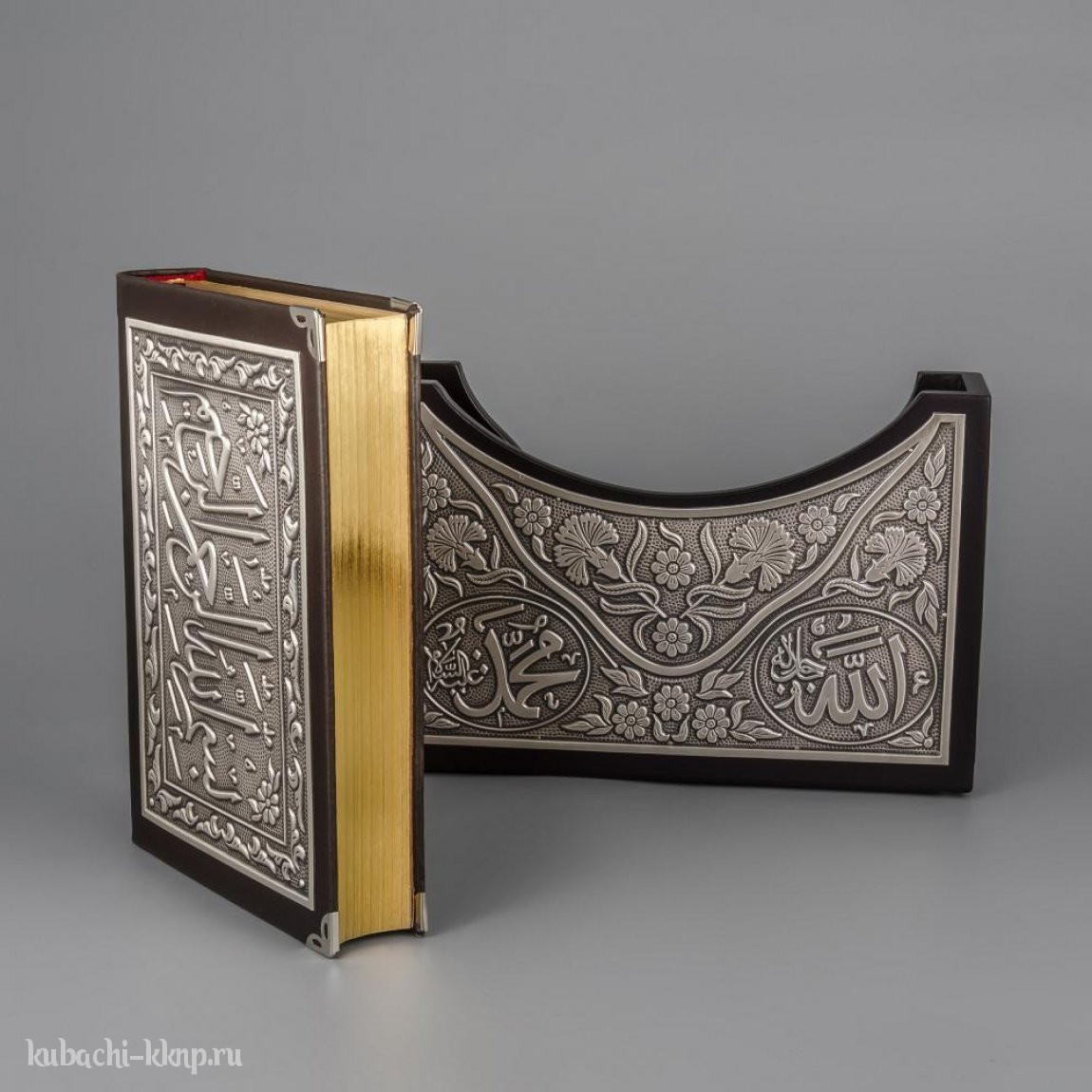 Большой коран в вертикальном футляре отделанный серебром - Кор07сб