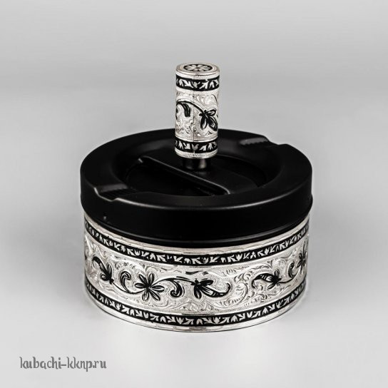 Серебряная пепельница с красивым орнаментом «Совеременая» - п0007