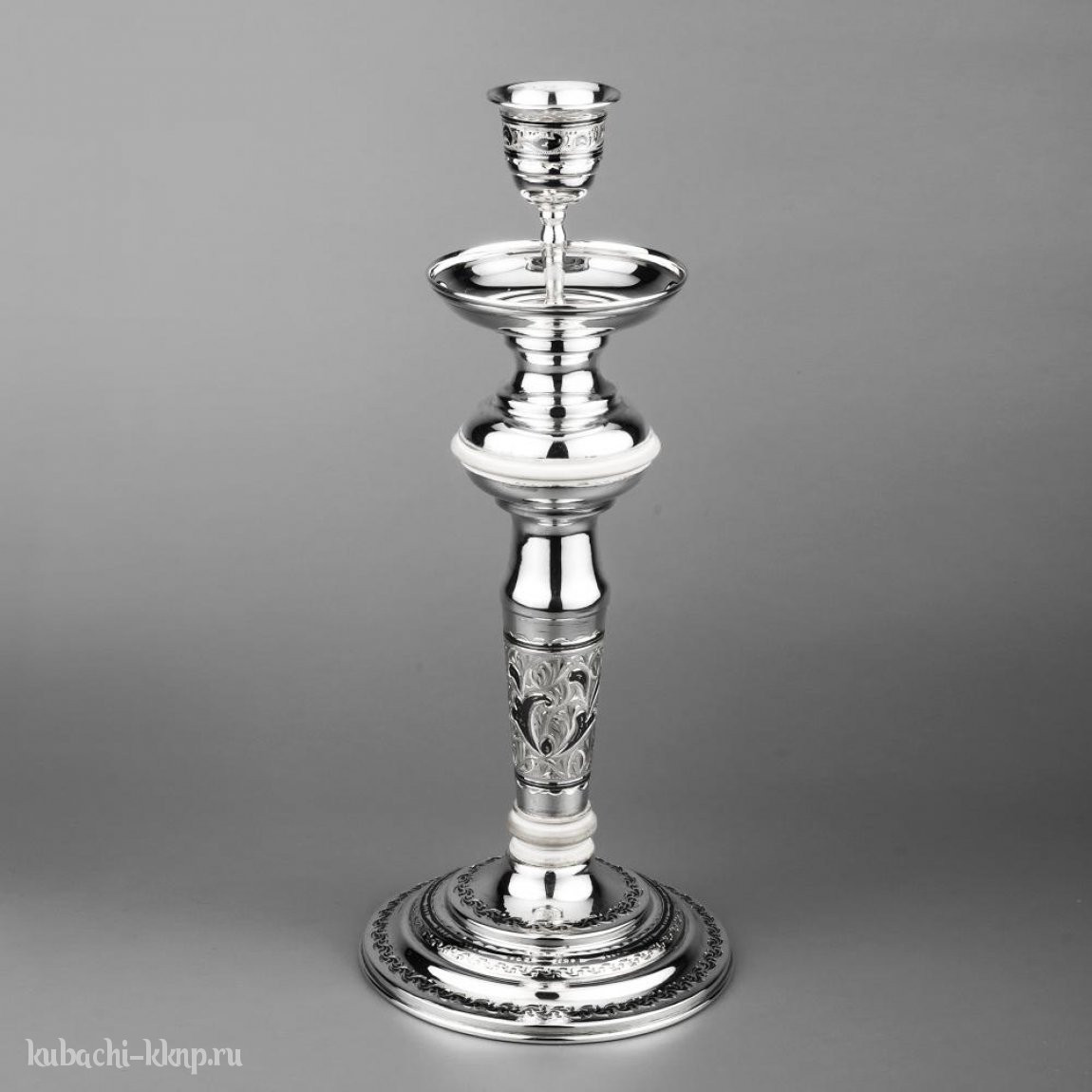 Подсвечник серебряный с орнаментом на одну свечу, пдс0002