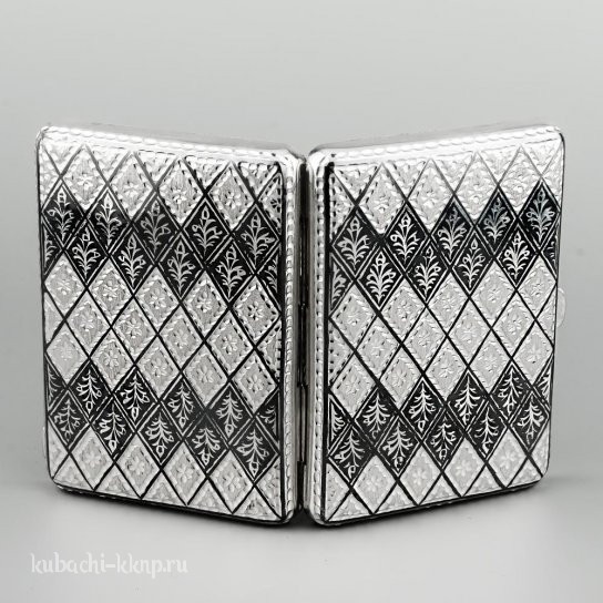 Серебряный портсигар «Черный ромб», пдс060