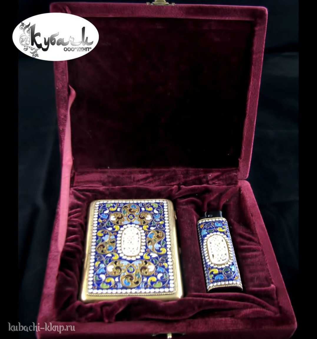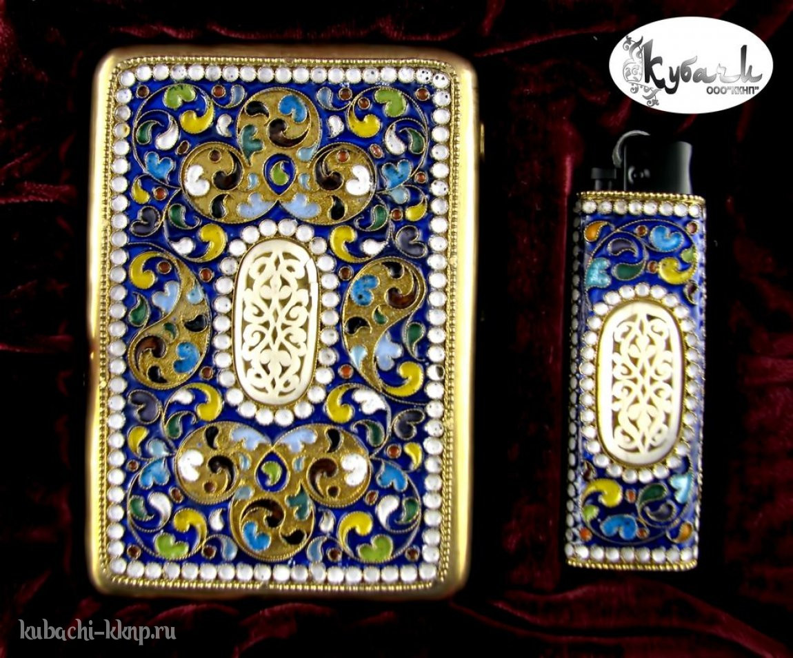 Серебряный кубачинский портсигар с гербом России - ПДС066