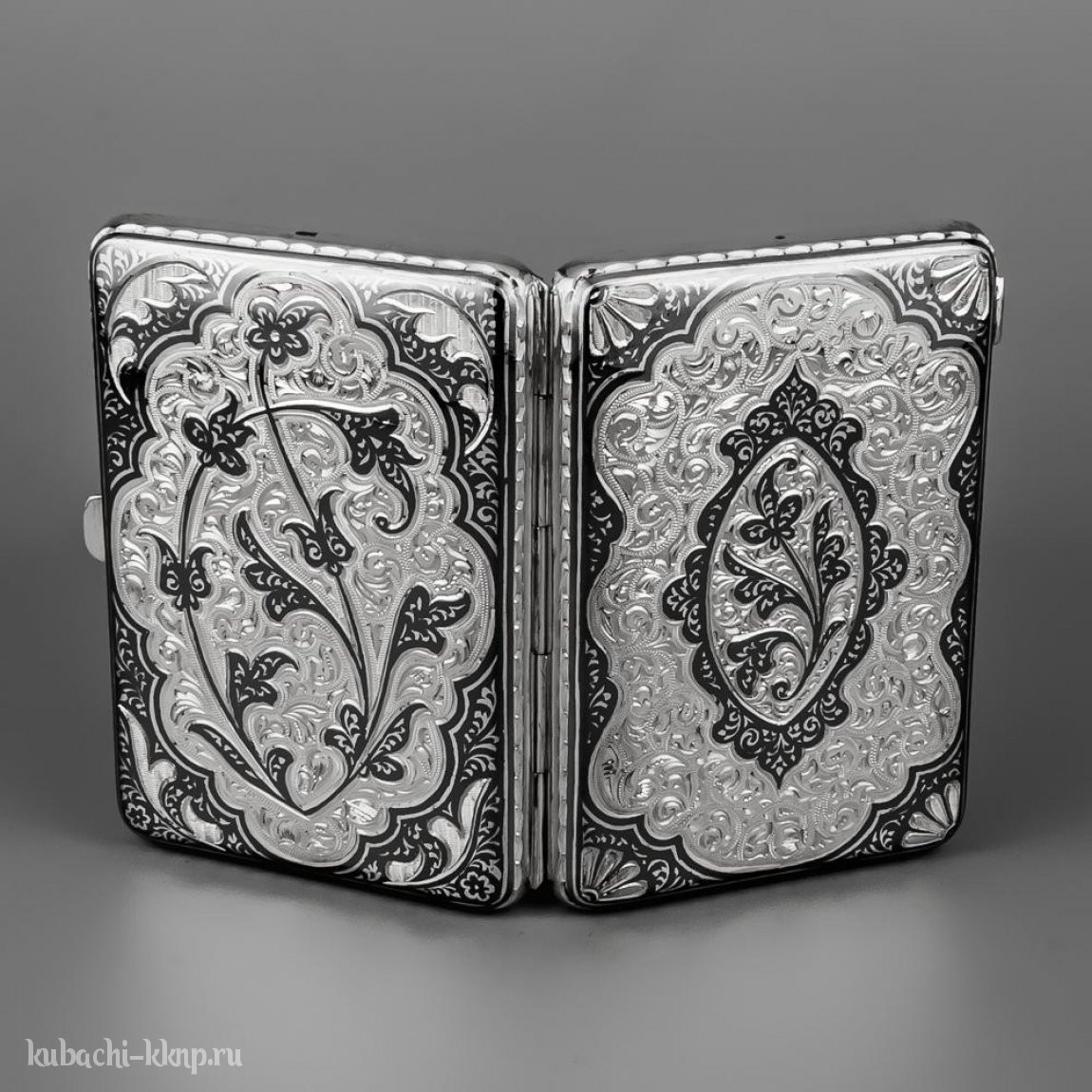 Портсигар из серебра с красивым орнаментом и гравировкой, пдс012