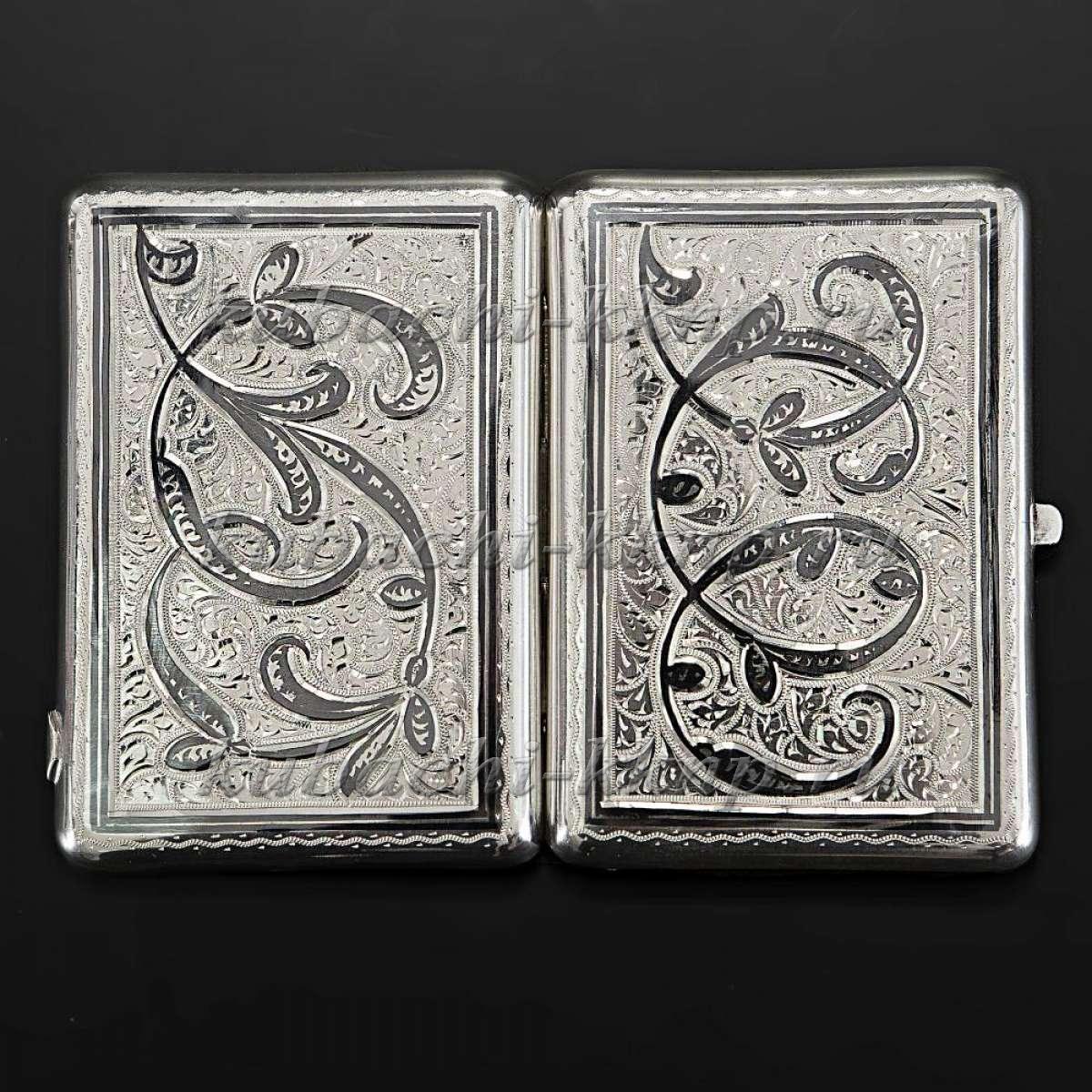 • Портсигар из серебра с красивым орнаментом и гравировкой - пдс012