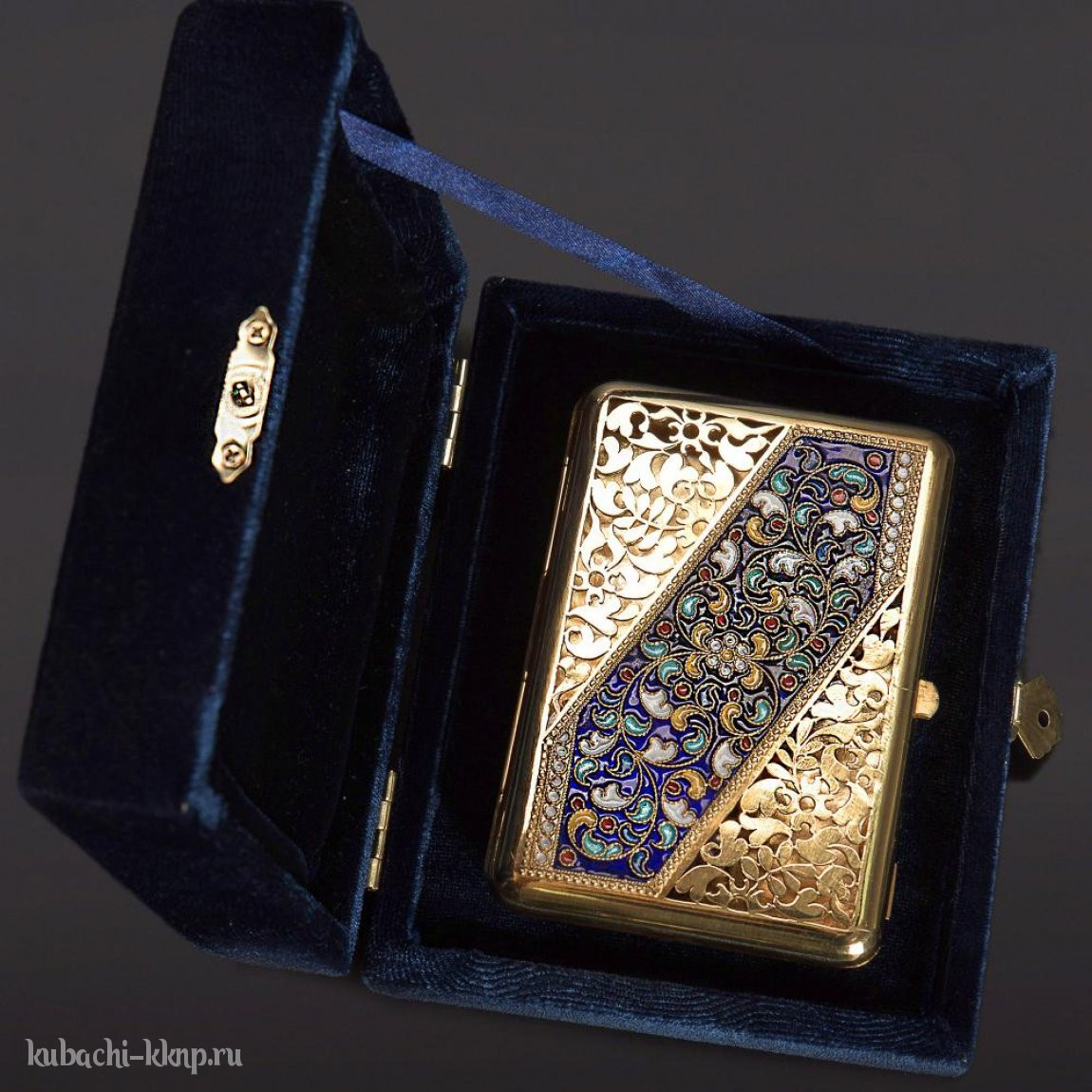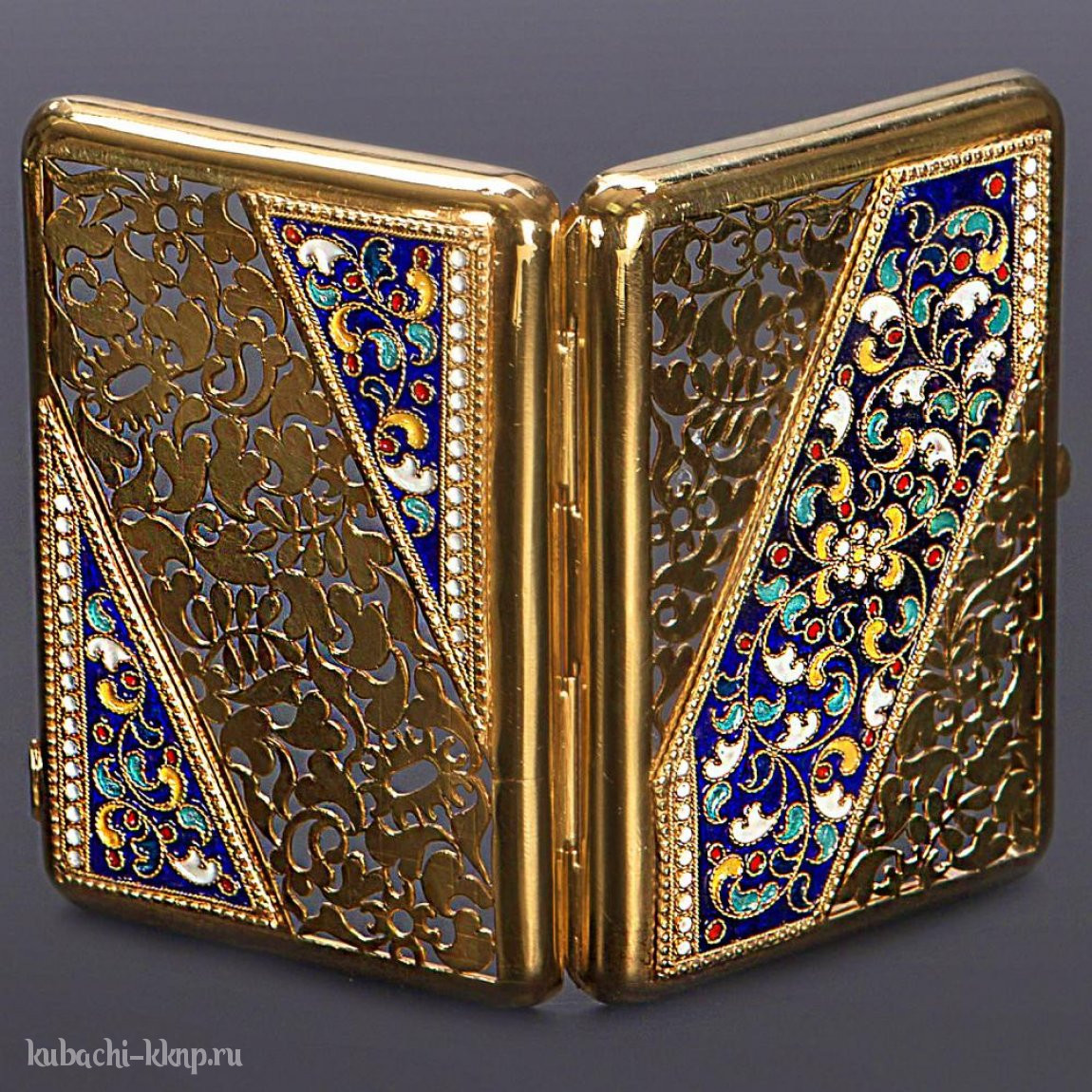 Портсигар из серебра с эмалью и позолотой, пдс008