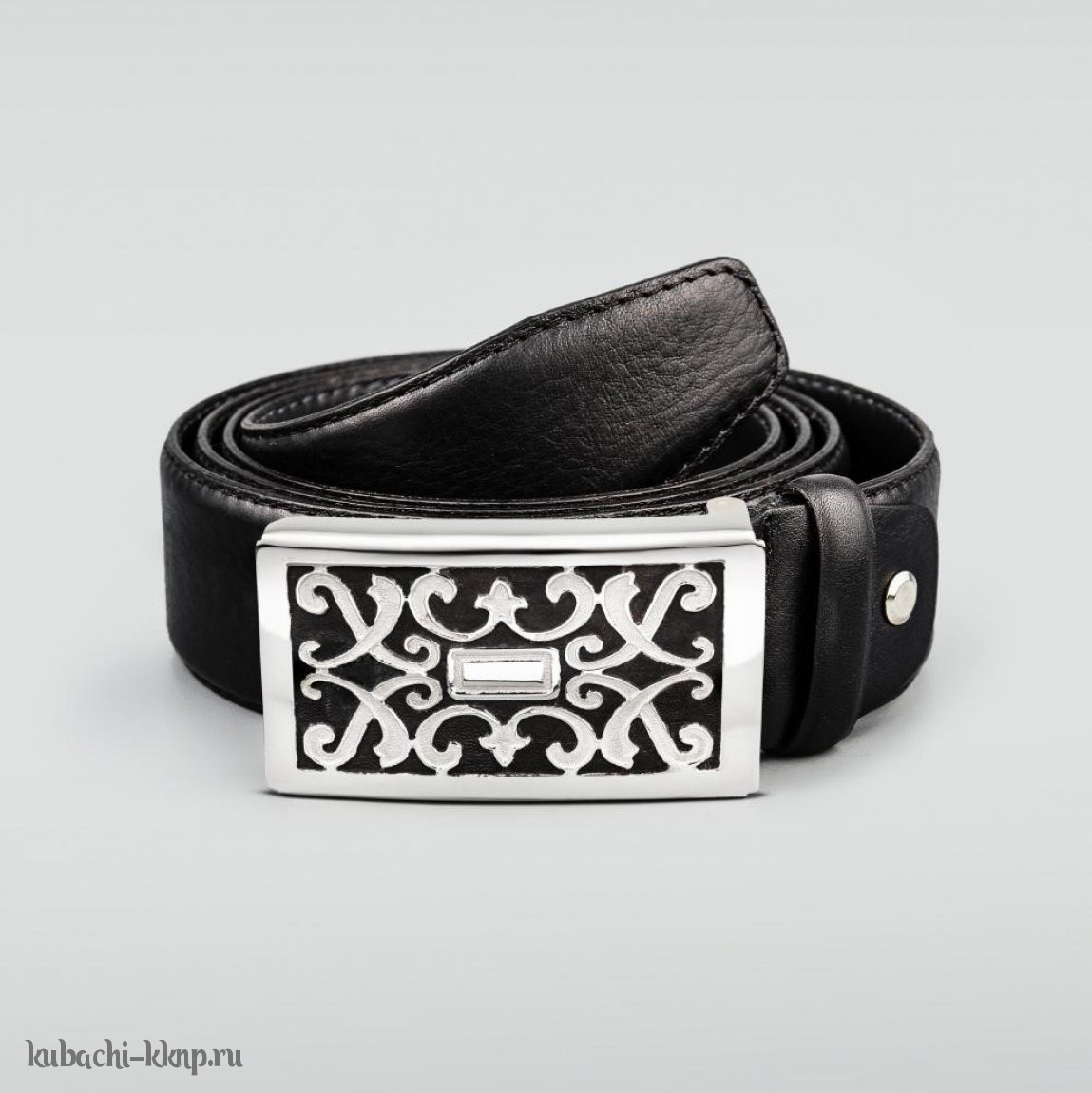 Настоящий классический ремень с серебряной пряжкой - рм37