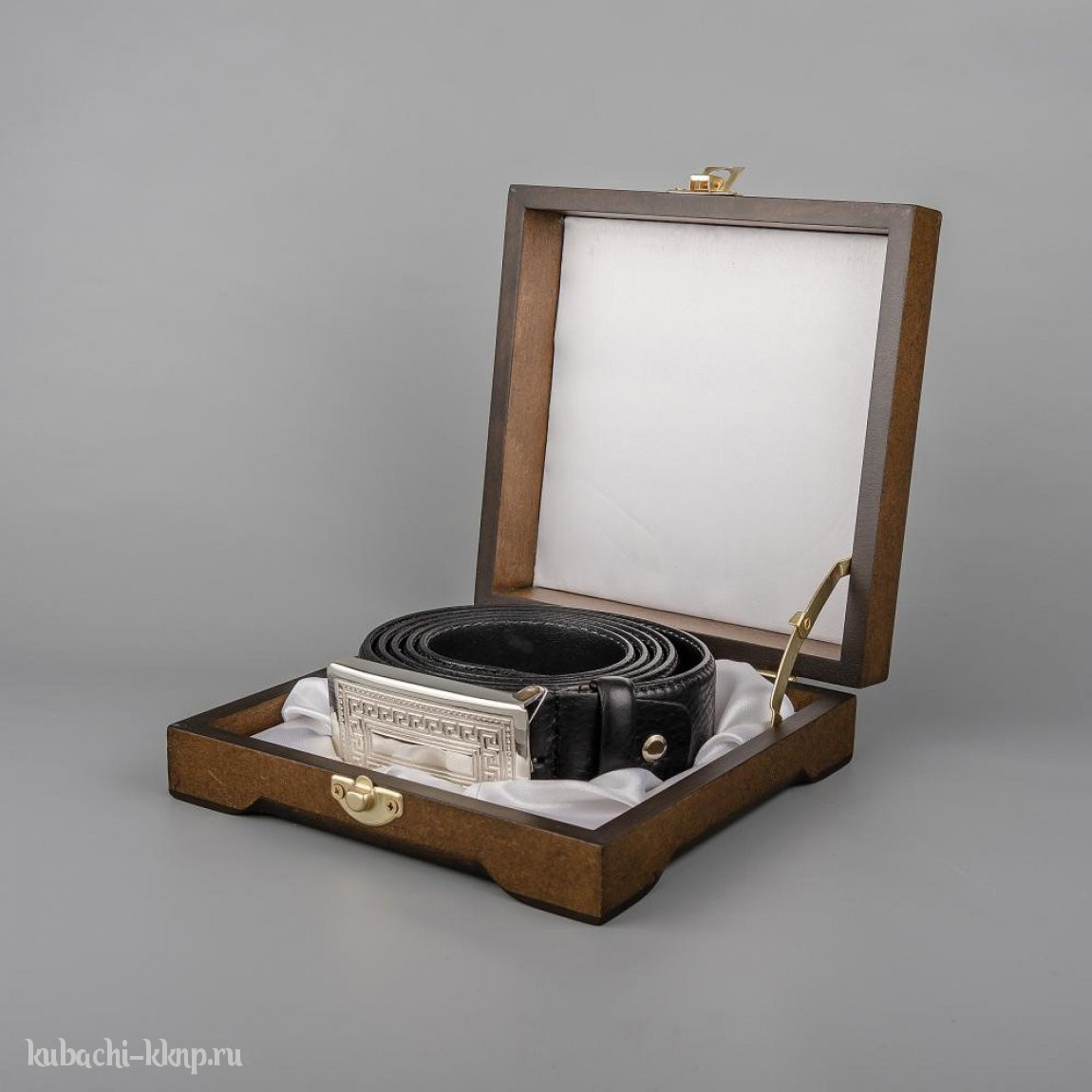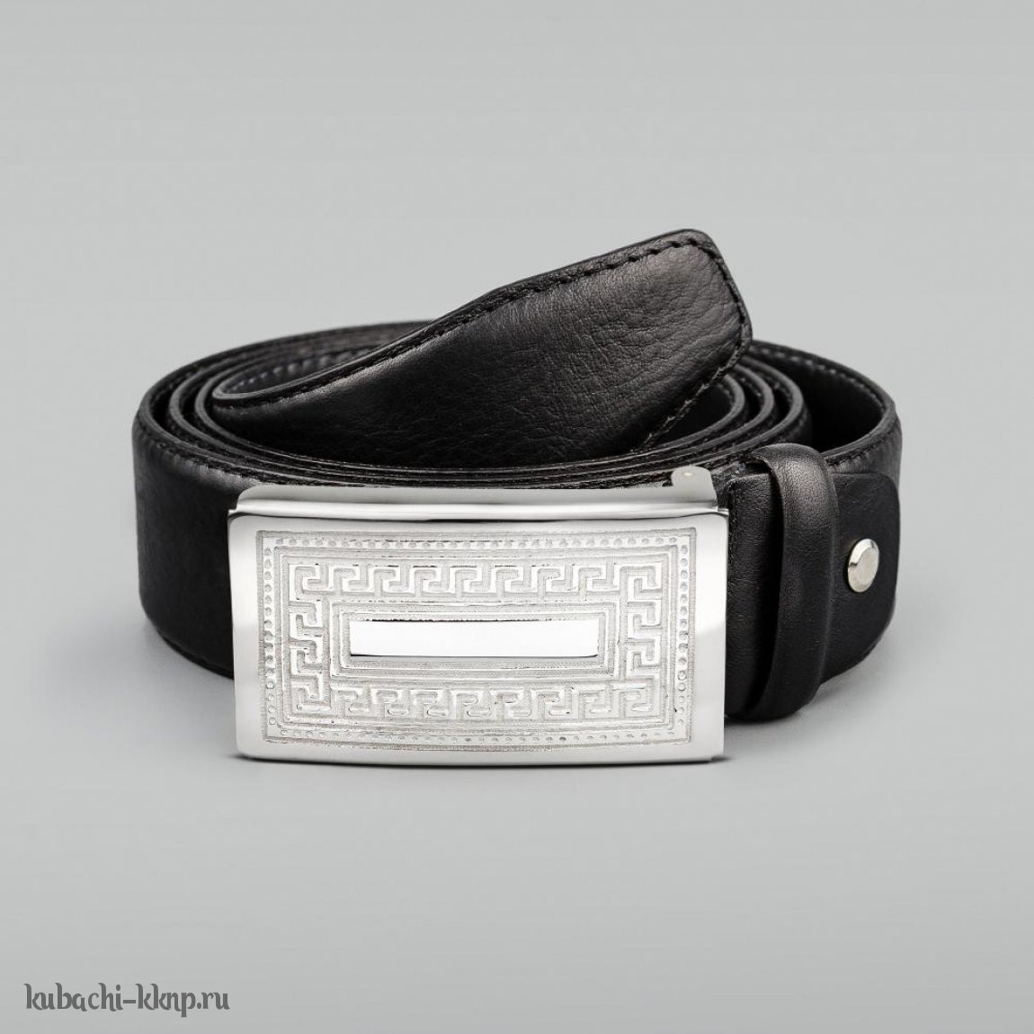 Настоящий классический ремень с серебряной пряжкой - рм37