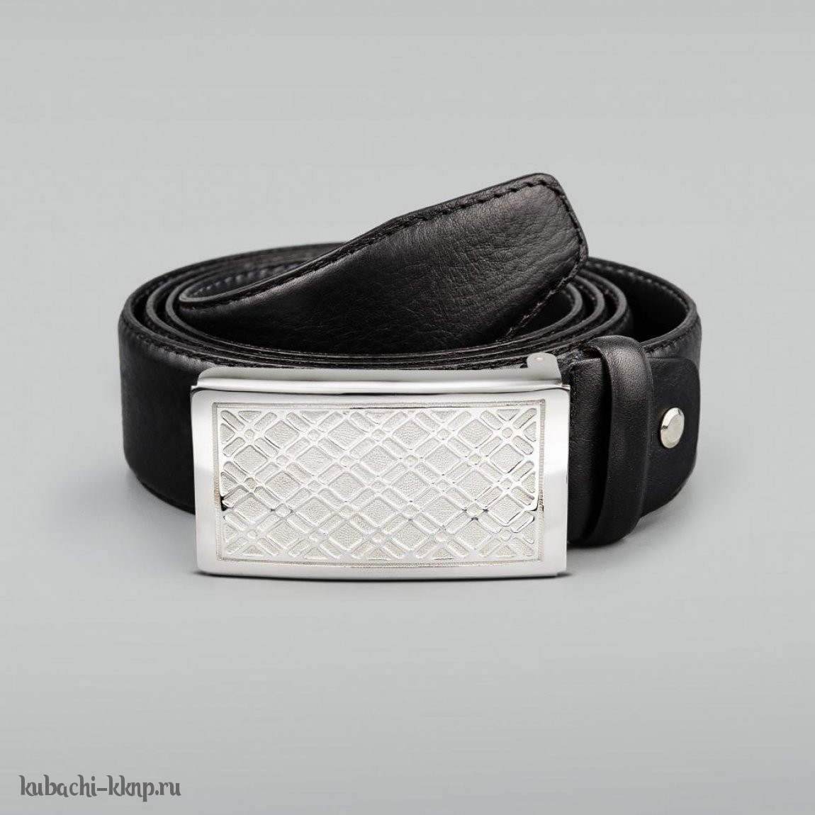 Прямоугольна серебряная пряжка с кожаным  ремнем - рм011