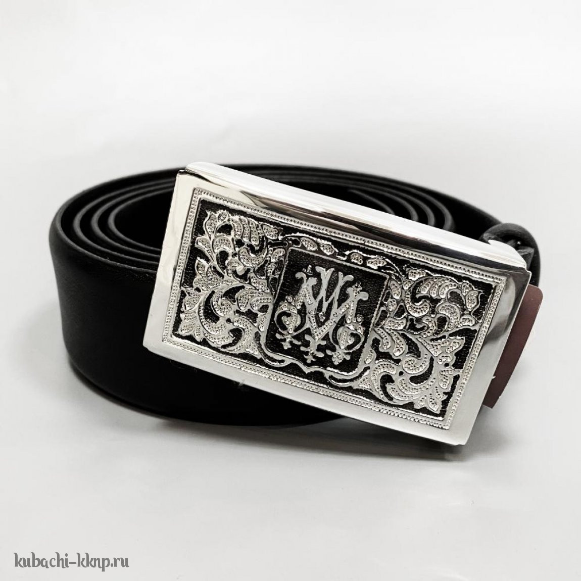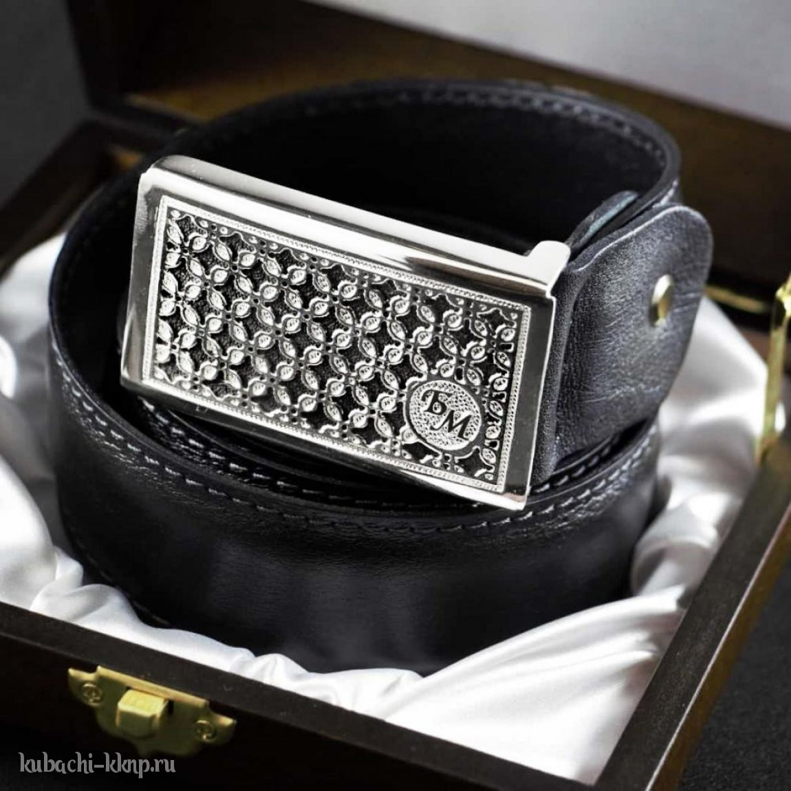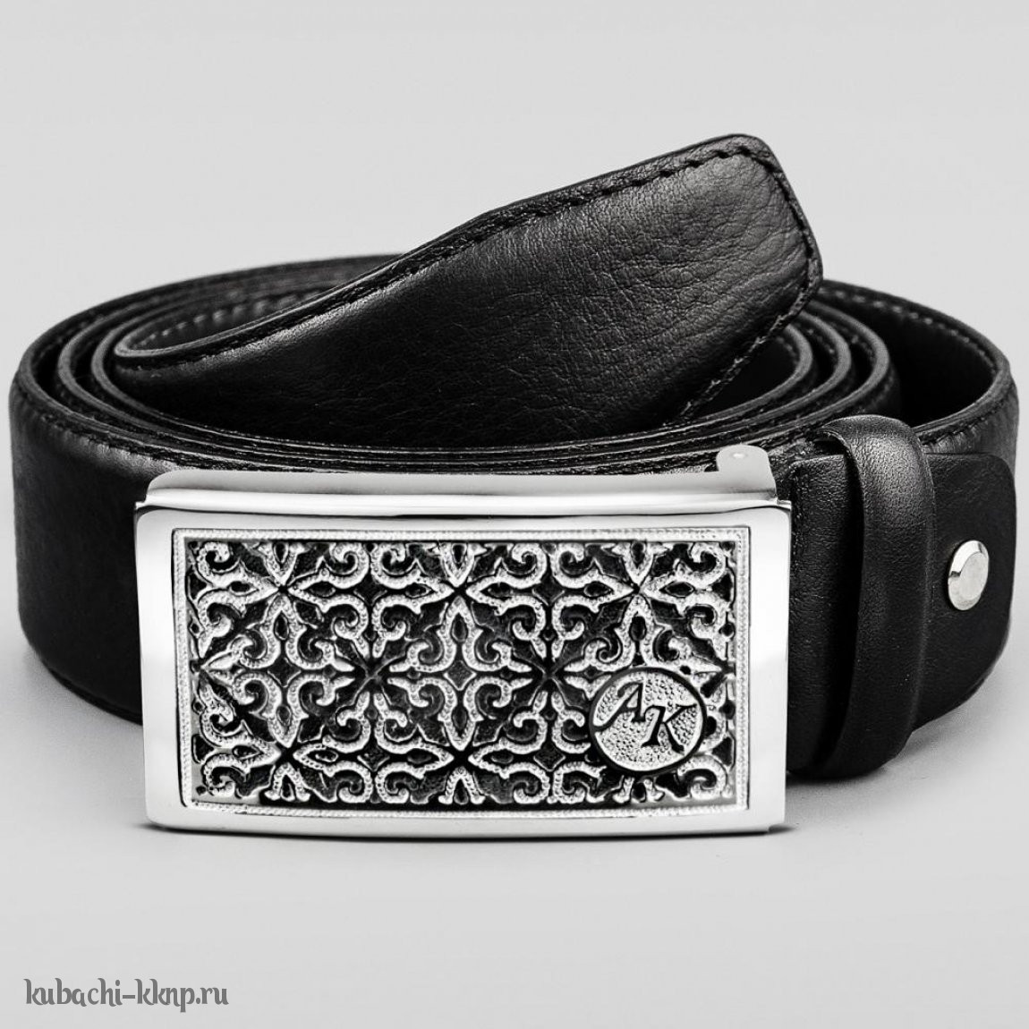 Пряжка серебряная с черным кожаным ремнем - рм013
