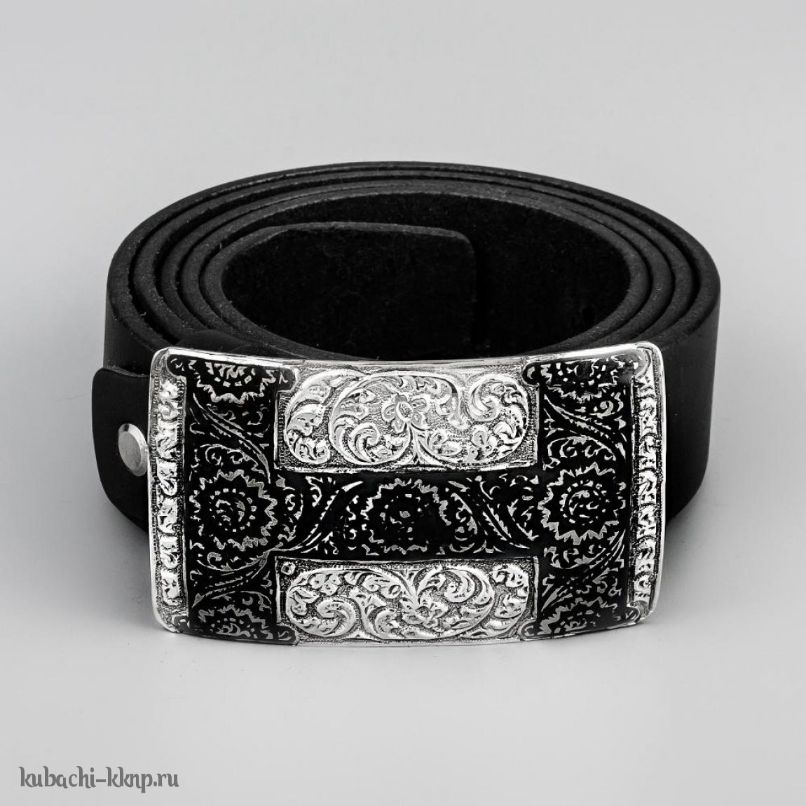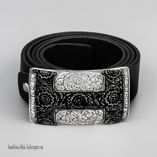 Пряжка серебряная с черным кожаным ремнем - рм013