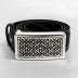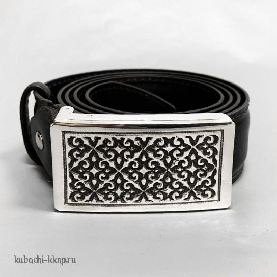 Прямоугольна серебряная пряжка с кожаным  ремнем - рм011