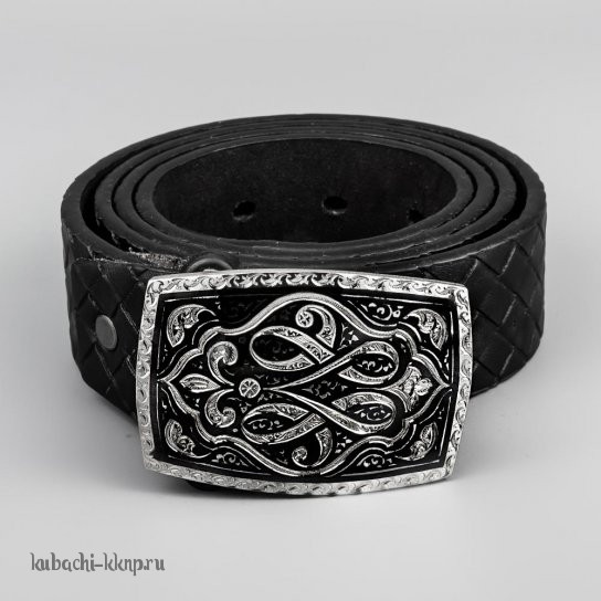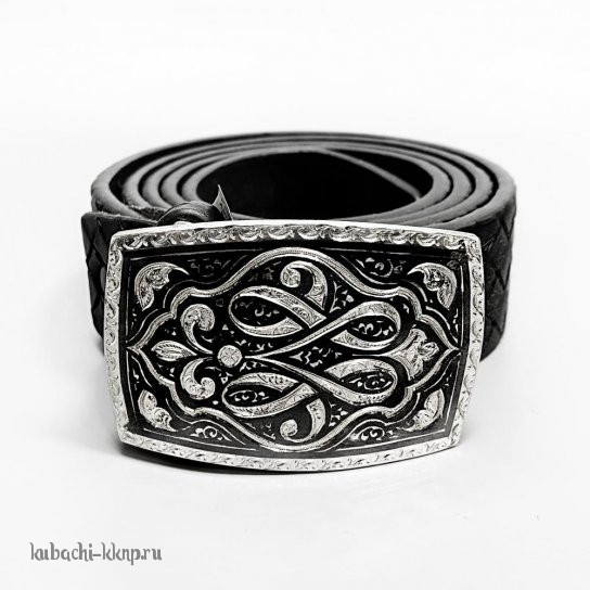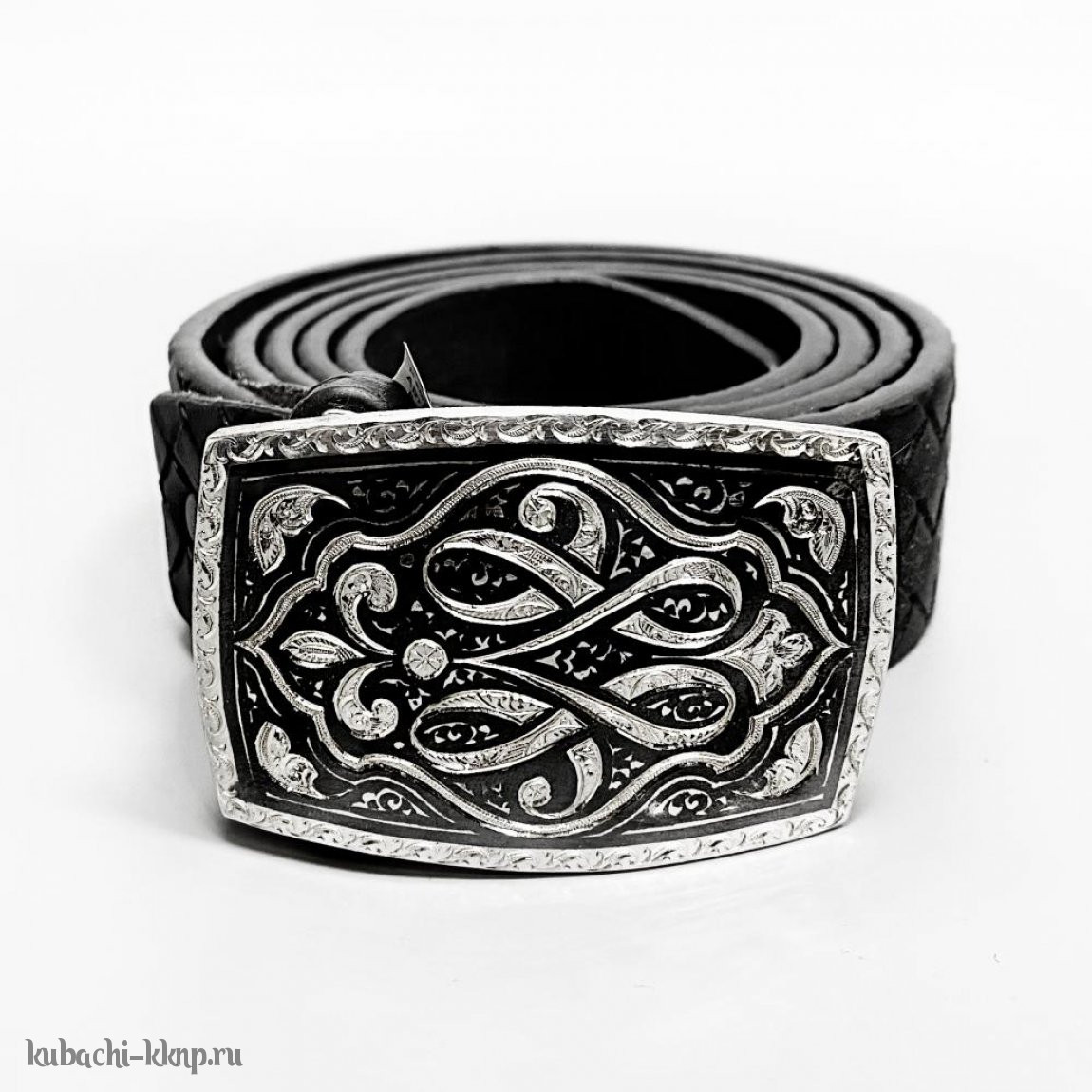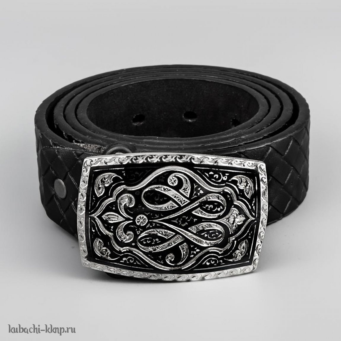 Пряжка серебряная с черным кожаным ремнем - рм013