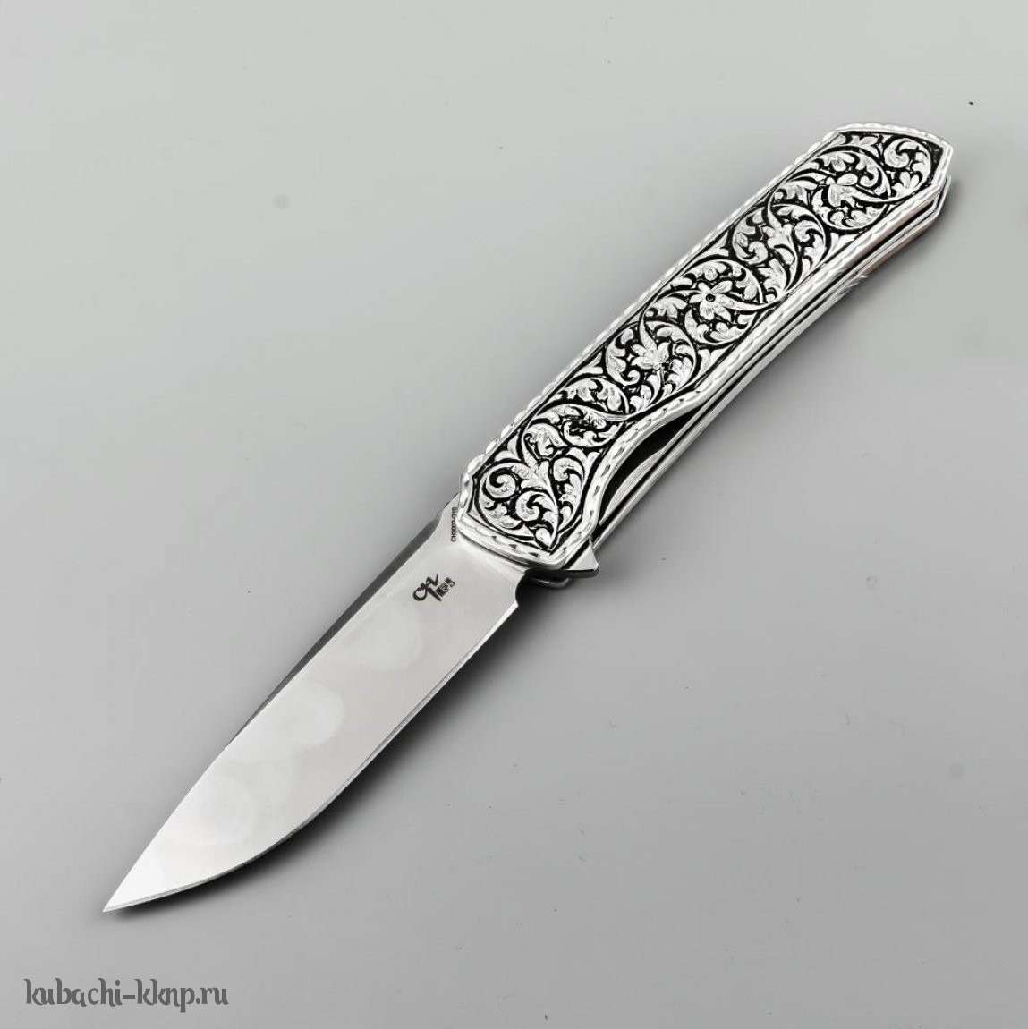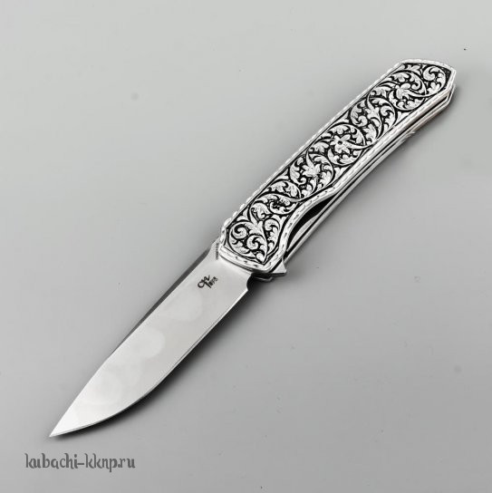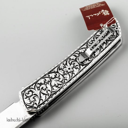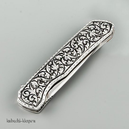 Выкидной серебряный нож с орнаментом, кн27