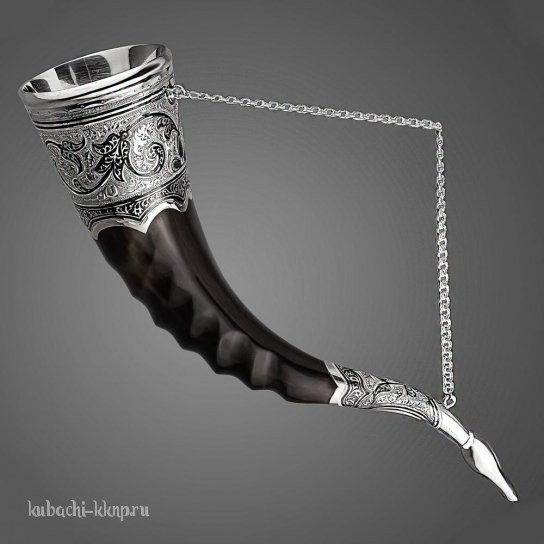 Рог с серебряными вставками с гравировкой, 75 мл - рог6
