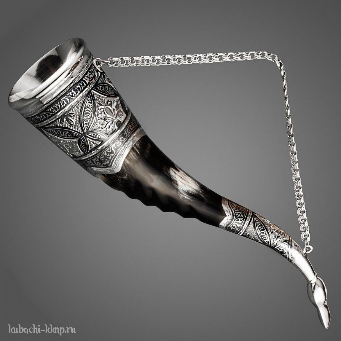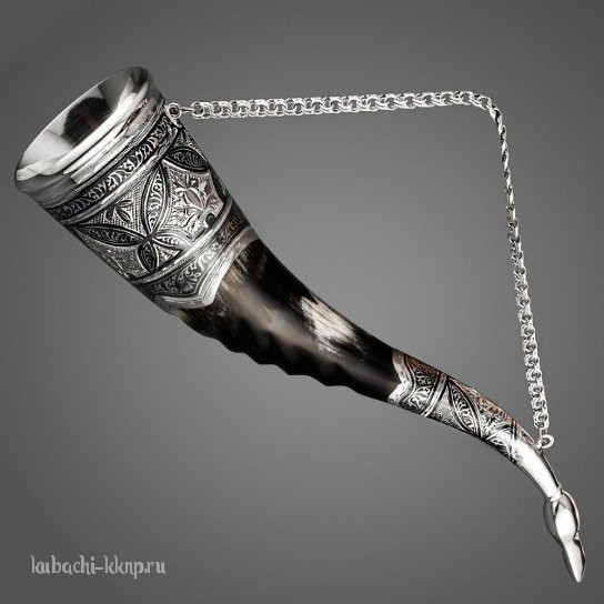 Рог с серебряными вставками от мастеров аула Кубачи - РОГ034