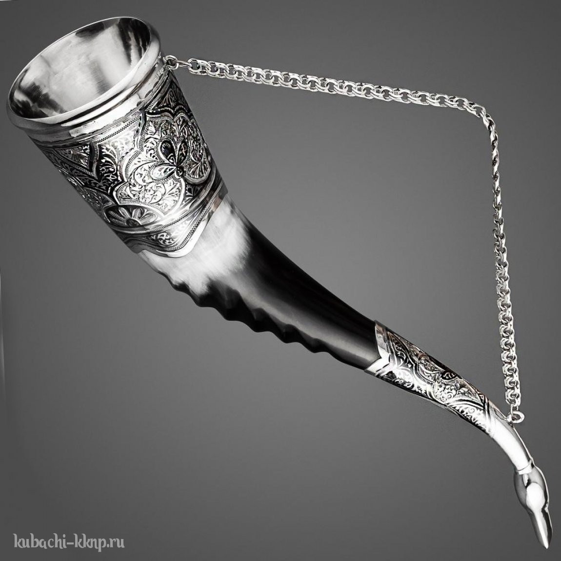 Рог с серебряными вставками от мастеров аула Кубачи - РОГ034