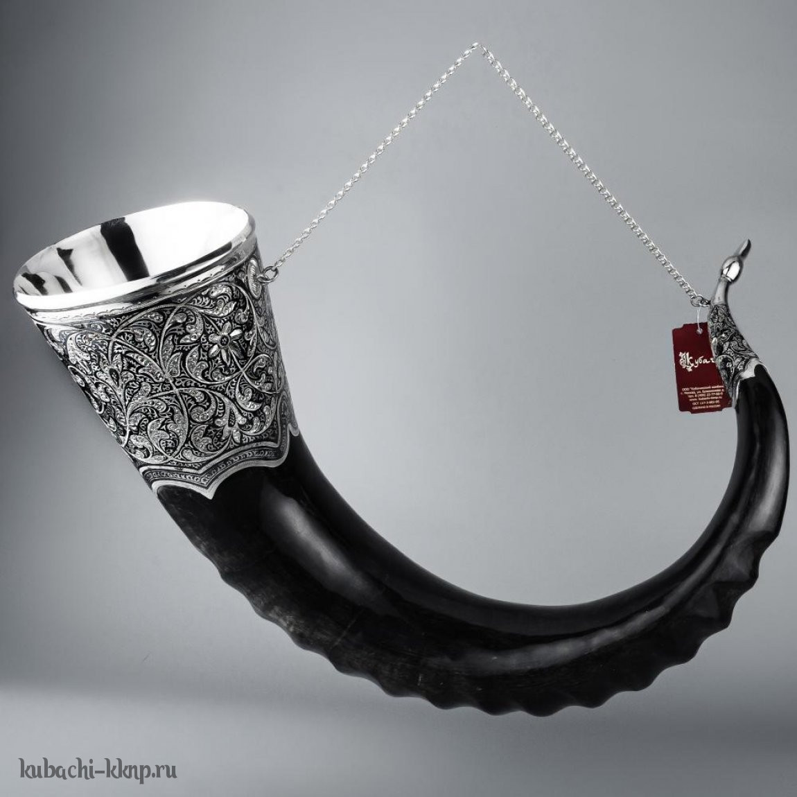 Хрустальный рог с вставками из серебра от мастеров Кубачи - РОГ030