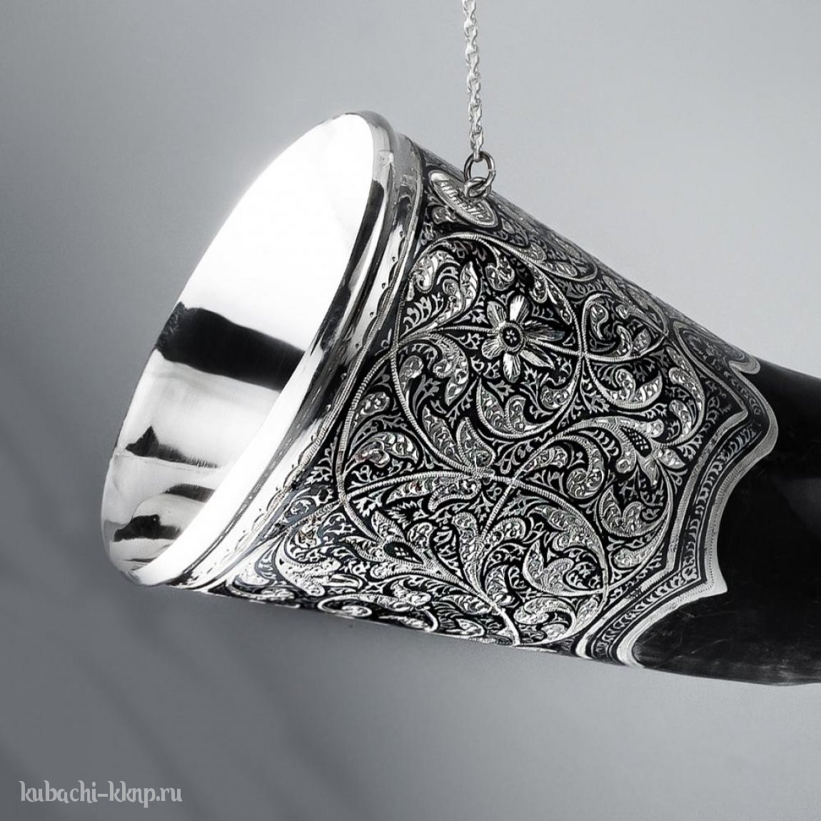 Рог серебряный с кубачинскими узорами, 80 мл - рог015