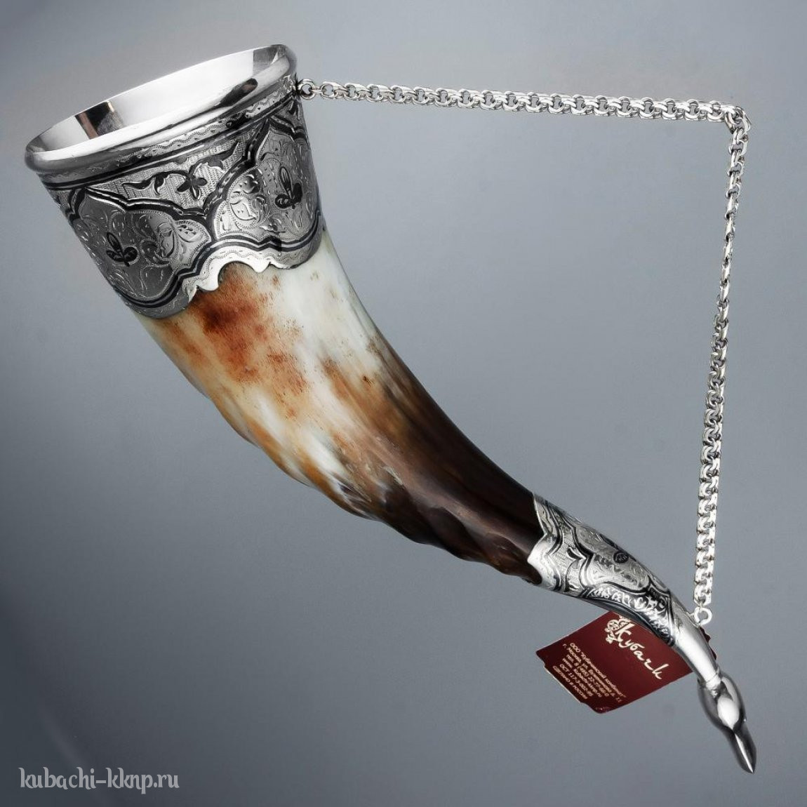 Рог серебряный с кубачинским орнаментом, 90 мл, рог018