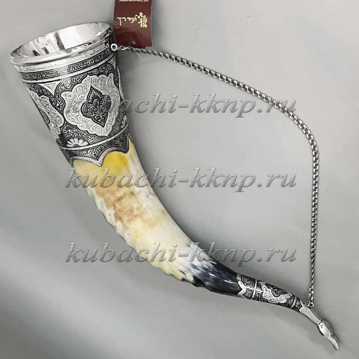 Рог с отделкой серебра, РОГ020