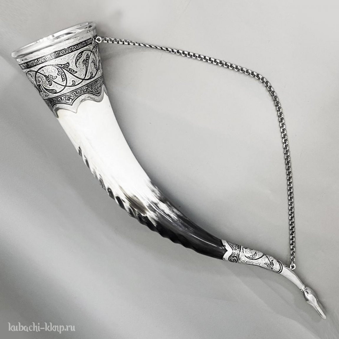 Рог серебряный с чернением и гравировкой, 200 мл - рог016