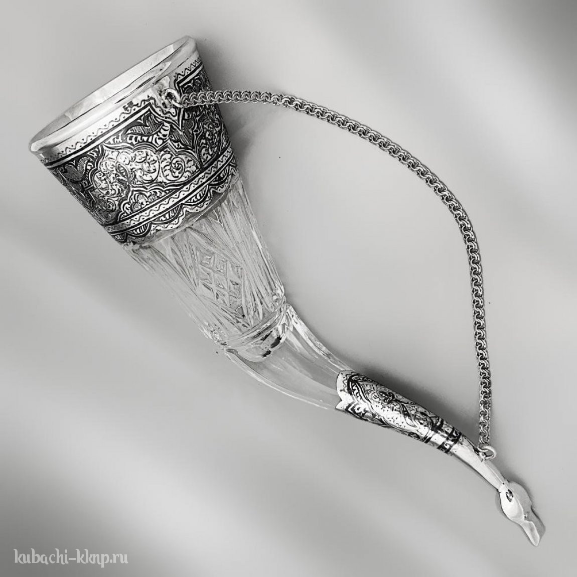 Рог хрустальный с серебряными вставками, РОГ023