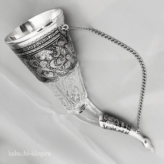 • Хрустальный рог с серебром от кубачинских мастеров - РОГ029