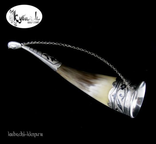 Рог с серебряными вставками с гравировкой, 75 мл - рог6