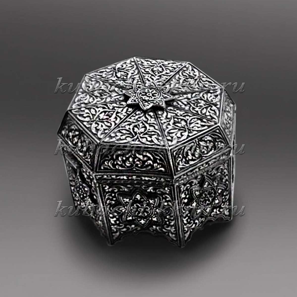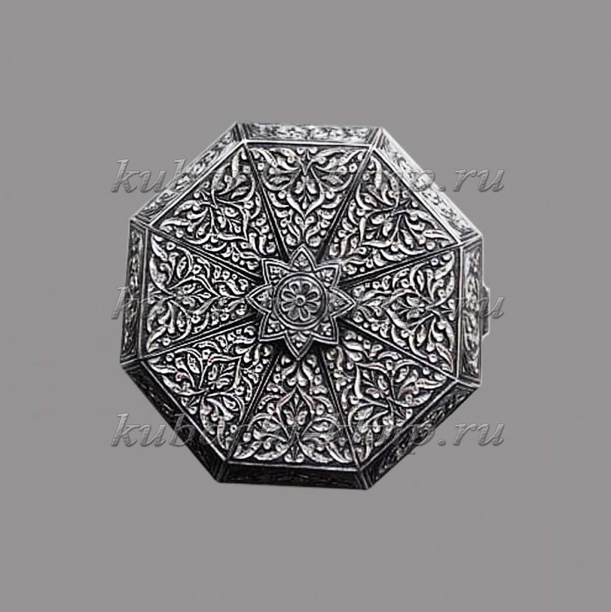 Небольшая шкатулка из серебра с глубокой гравировкой, шк06