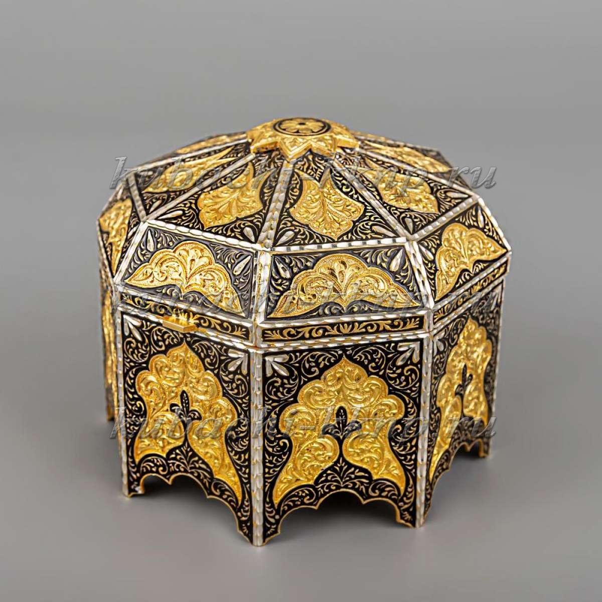 Серебряная шкатулка «Позолоченная», шк08