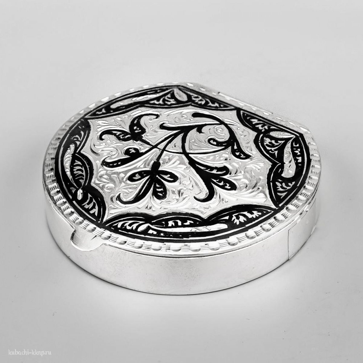 Серебряная таблетница с гравировкой и чернением, ТАБ01