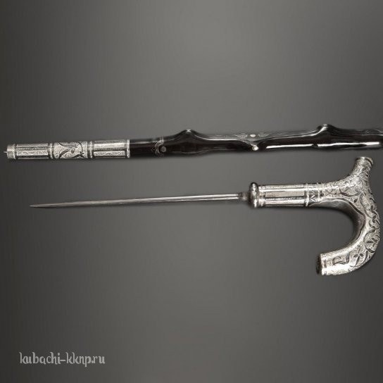 Оригинальная трость с серебряными вставками и стилетом - ТР03