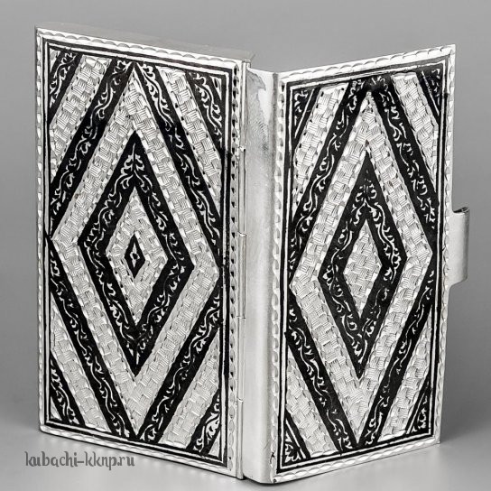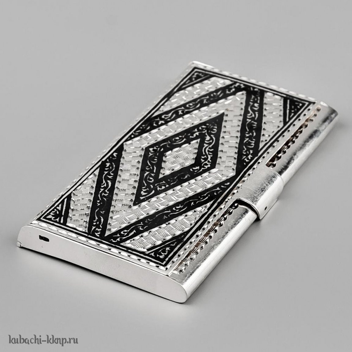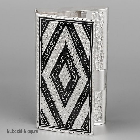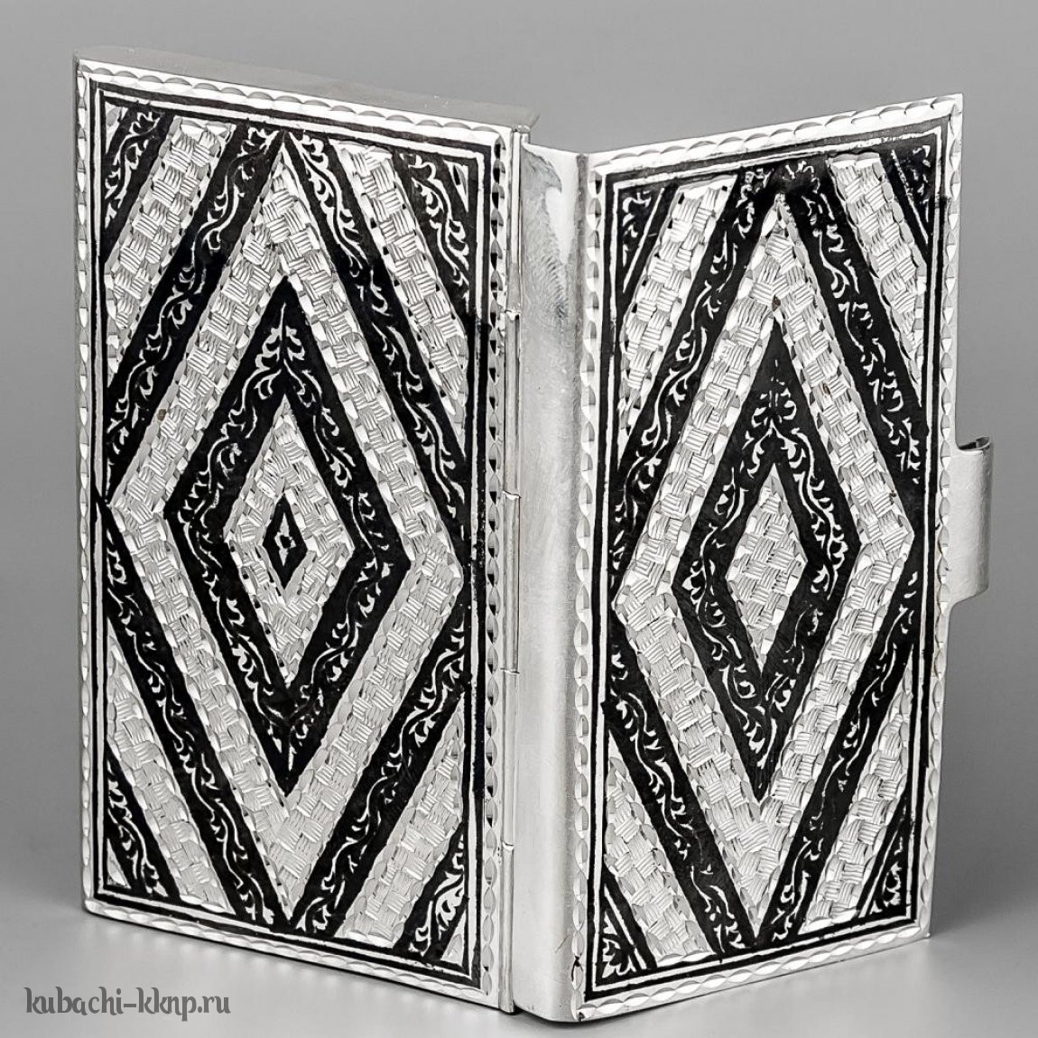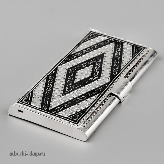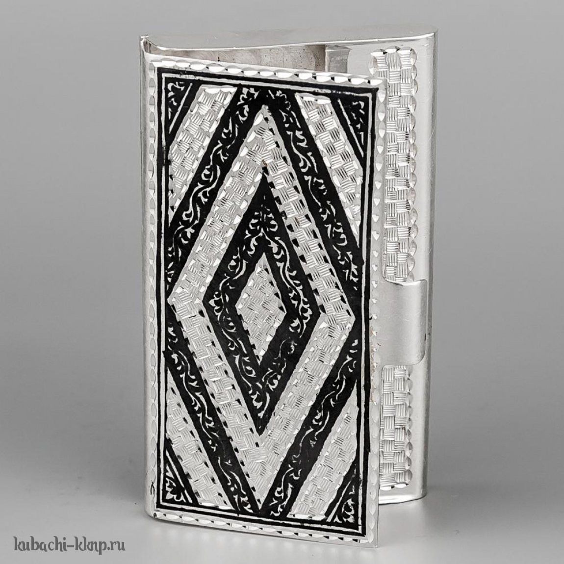Серебряная визитница с геометрическим орнаментом, vzt08