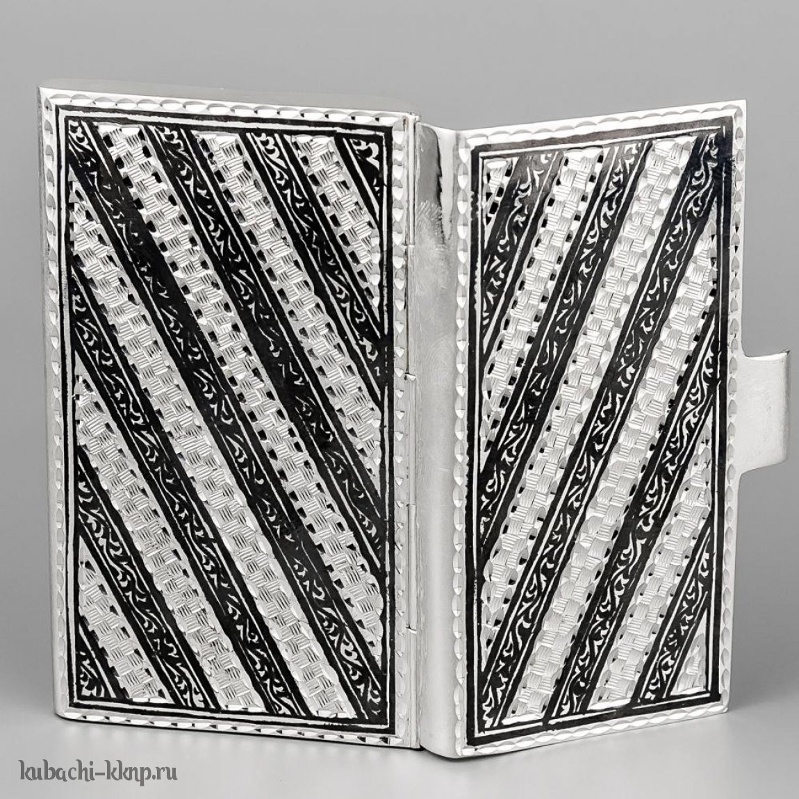 Визитница из серебра с кубачиским  орнаментом - vzt03
