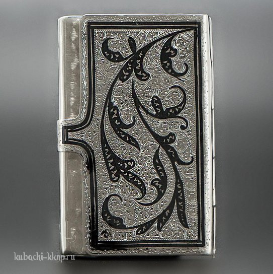 Визитница из серебра с кубачинским узором - vzt010