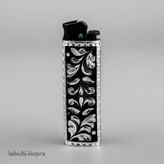Серебряная зажигалка с кубчинским орнаментом - заж09