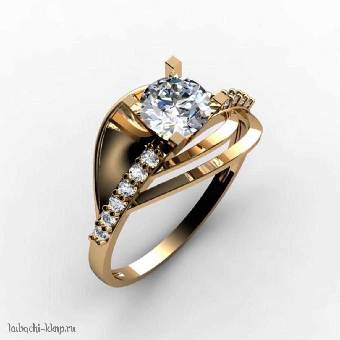 Яркое золотое кольцо с крупным фианитомольцо - 00038r
