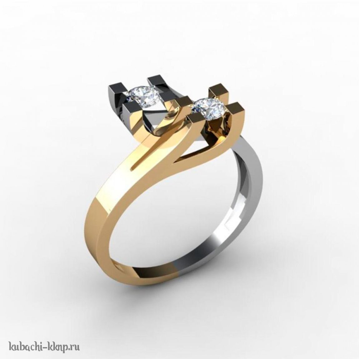 Кольцо из белого и желтого золота «Поцелуйчик», 00034r