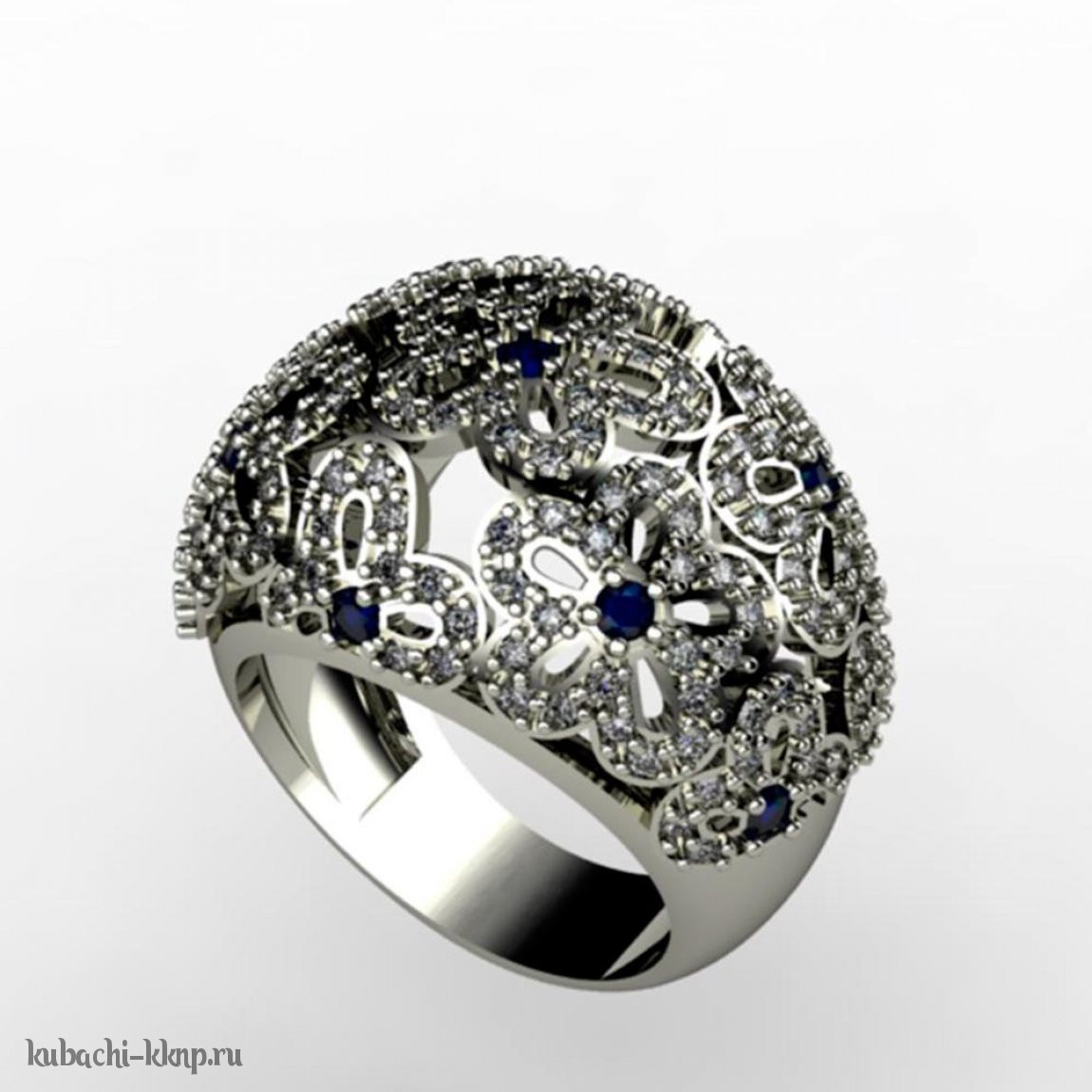 Кольцо из белого золота с ножеством фианитов, 00061r