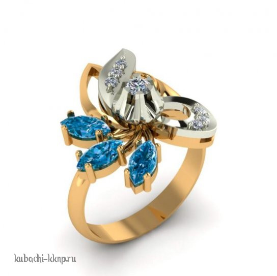 Золотое кольцо с цветными фианитами под топаз - 00094r
