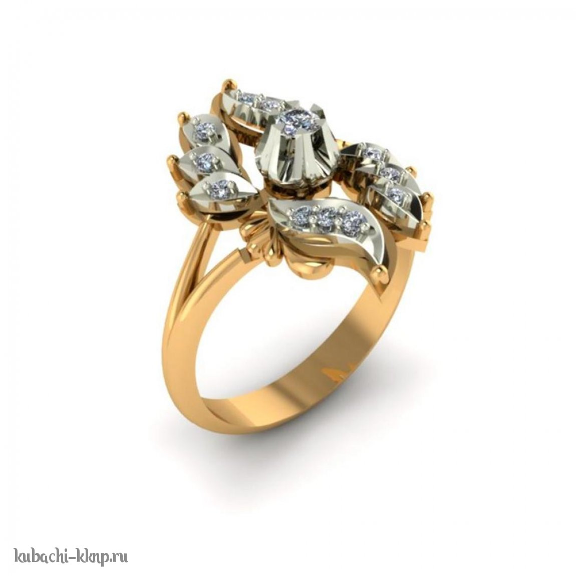 Золотое кольцо с фианитами «Тюльпан» с лепестками, 00089r