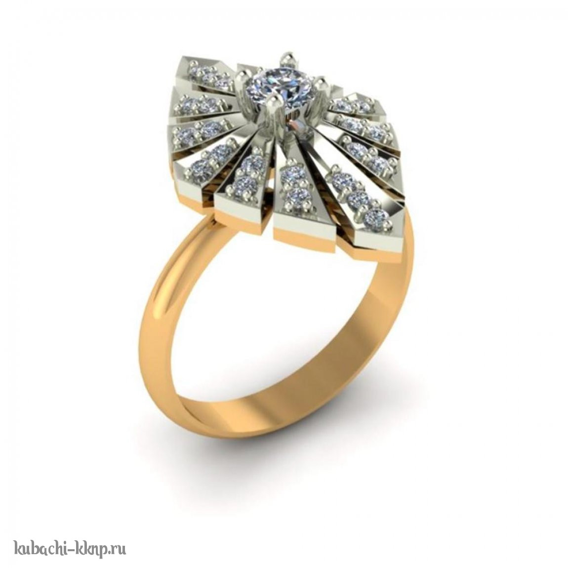 Золотое кольцо с фианитами «Луч», 00091r-к