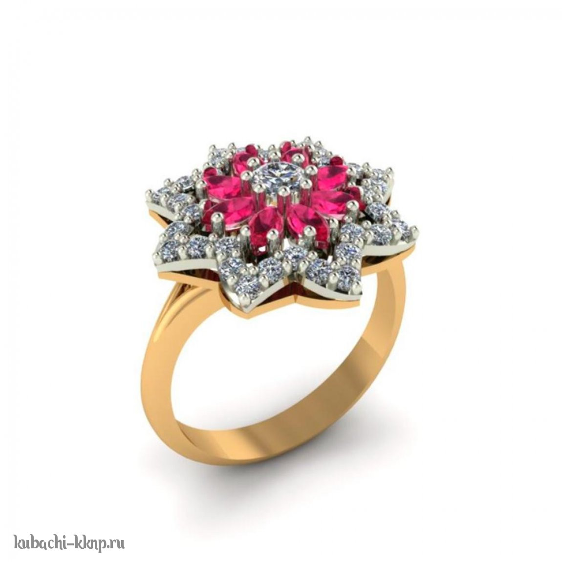 Золотое кольцо с цветными фианитами под гранат - 10010-r