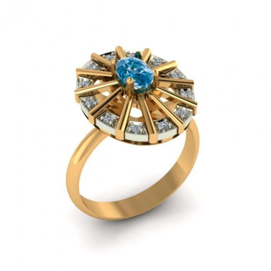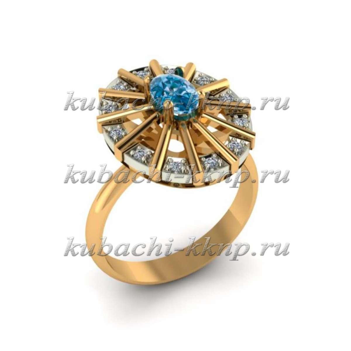 Интересное золотое кольцо с фианитами под топаз, 00101r