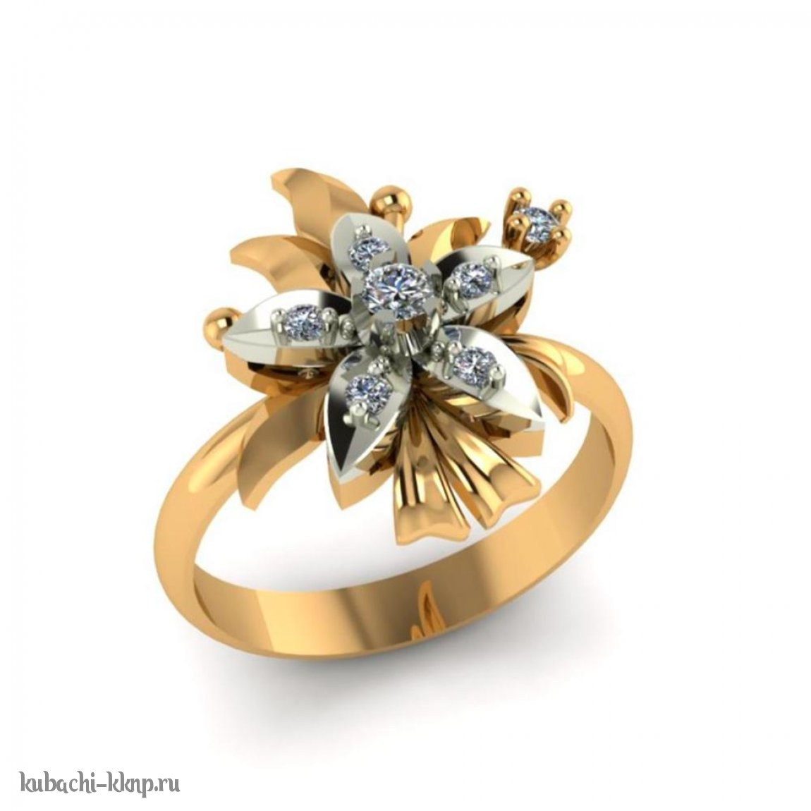 Золотое кольцо с фианитами «Цветочное», 00102r