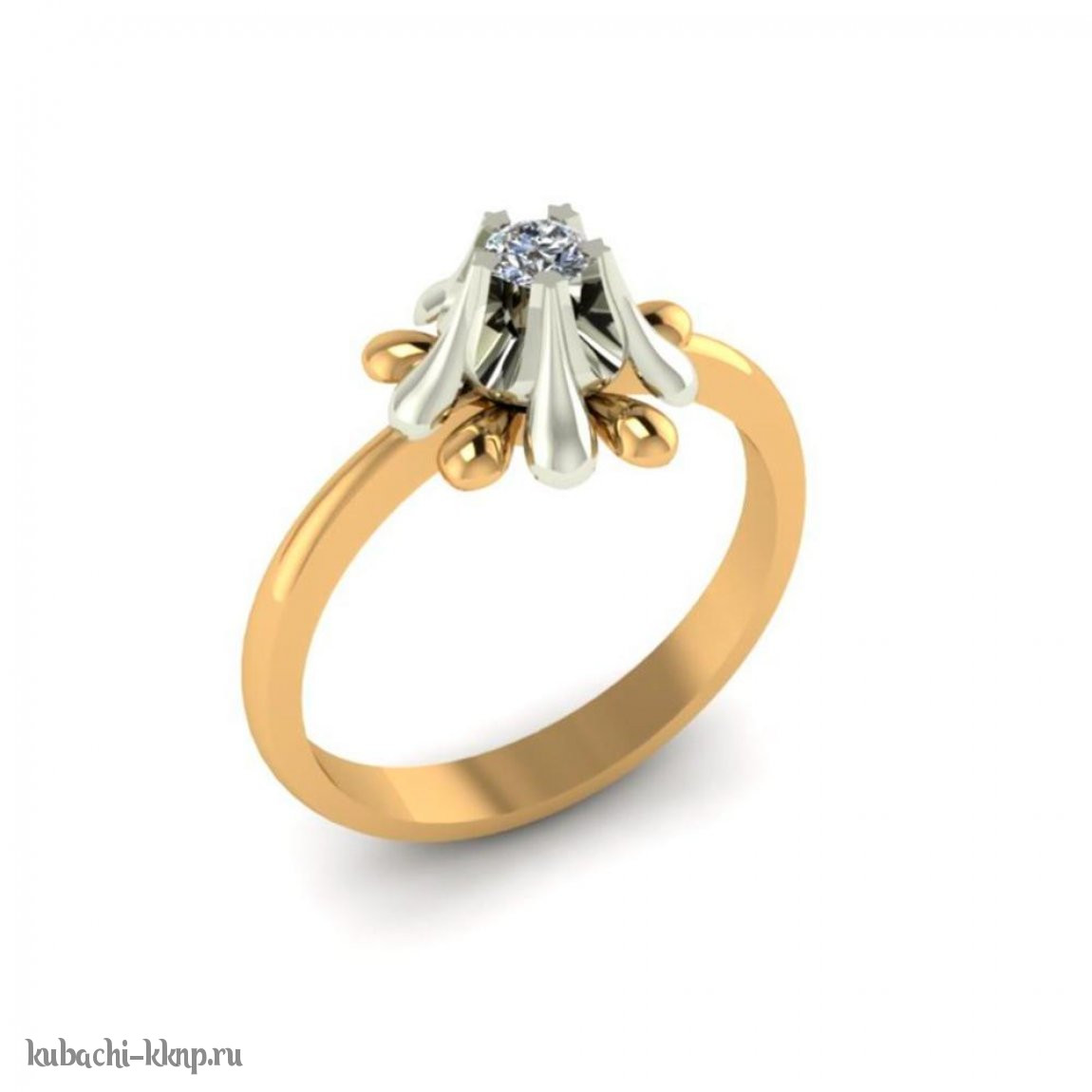 Золотое кольцо с фианитом «Тюльпан», 00105r