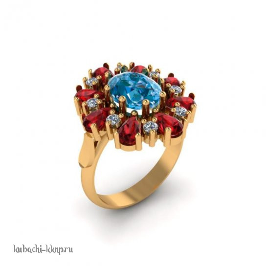 Кольцо золотое с фианитами под гранат и топаз, 00106r