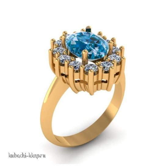 Овальное золотое кольцо с фианитами под топаз, 00111r