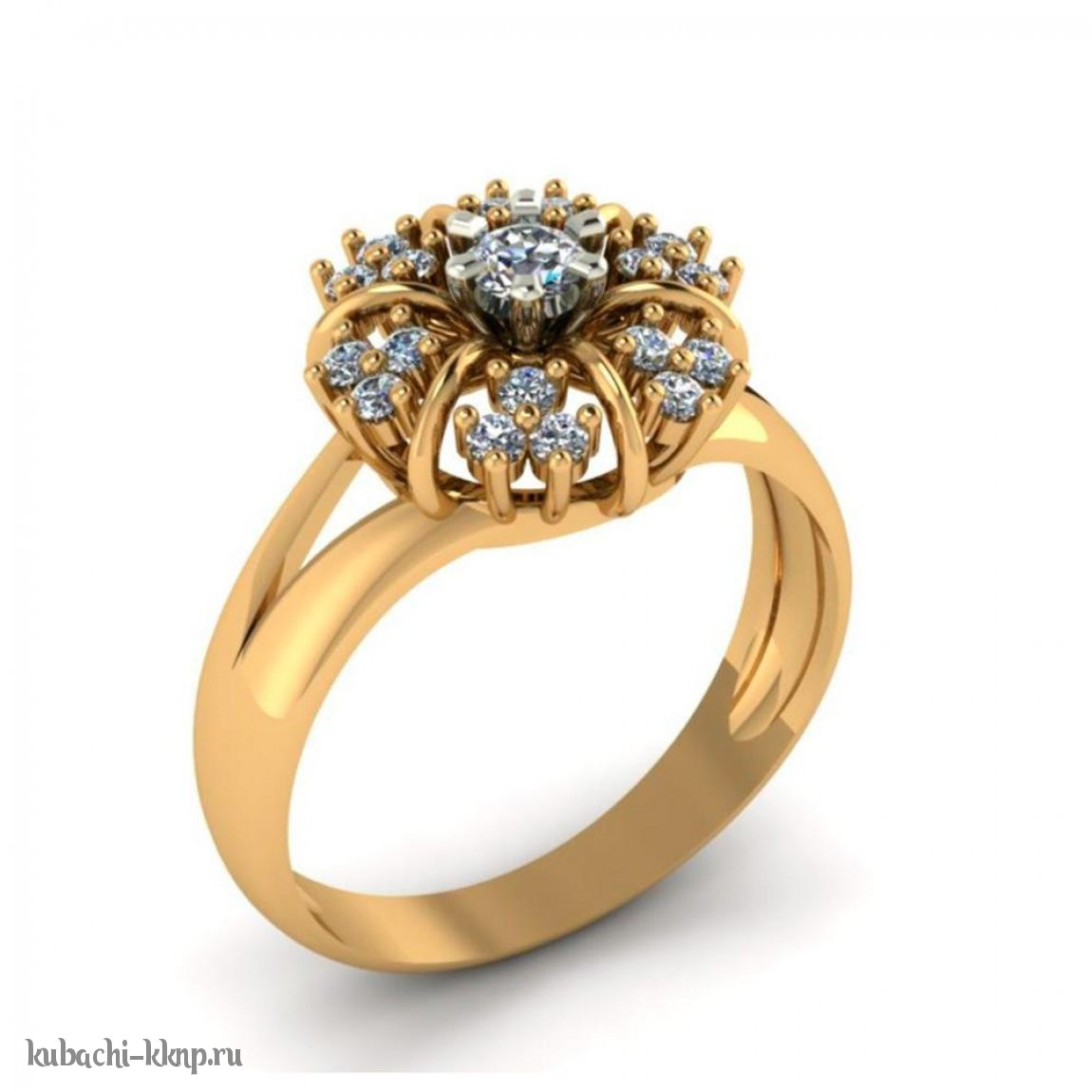Кольцо из белого и желтого золота с фианитами - 00098r